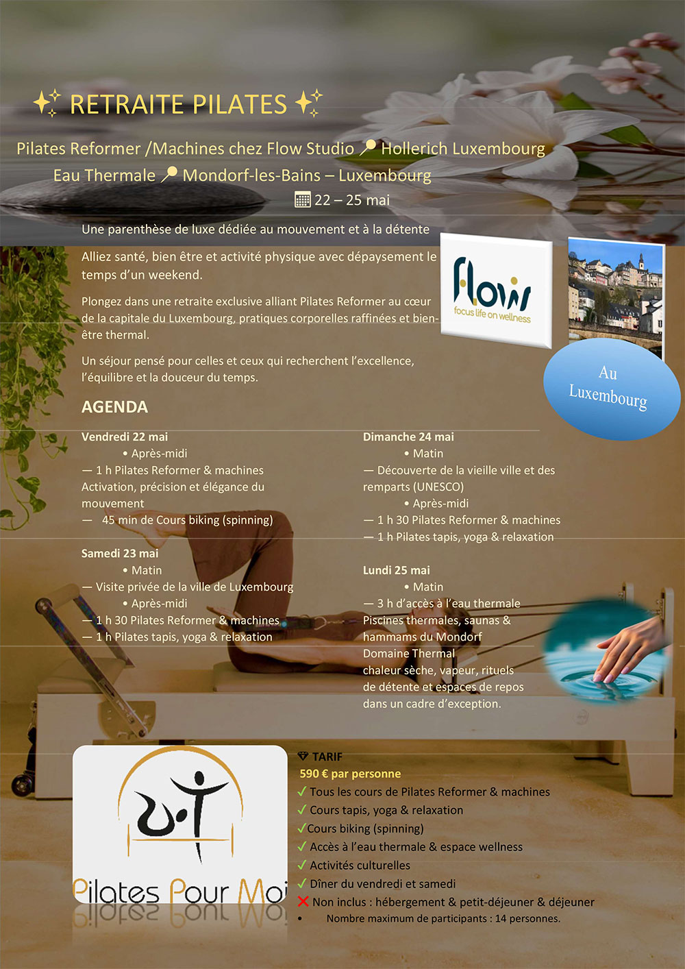 4 personnes par cours reformer et machines / 6 personnes par cours tapis